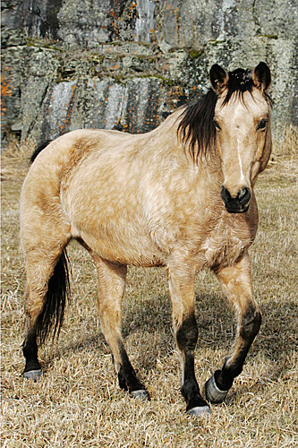 This beautiful horse with it's curly coat is an American Curly photographed in Montana